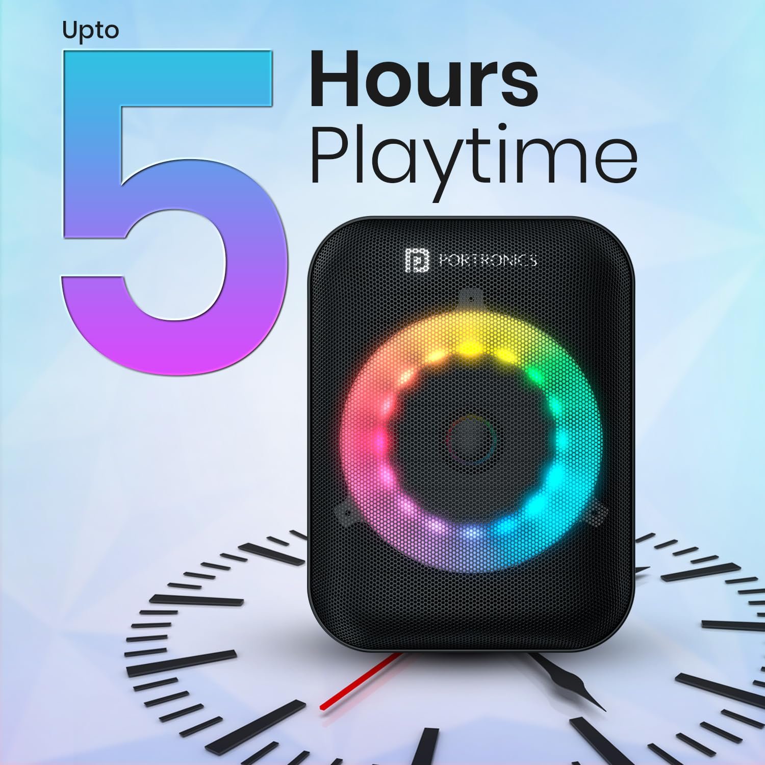 Portronics Apollo One 20W Wireless Bluetooth Portable Speaker with Wireless Karaoke Mic, 5 Hour Playtime, RGB LED Light, Bluetooth V5.3, Easy Grab Handle, USB/AUX in/TF Card, Type C Charging(Black)