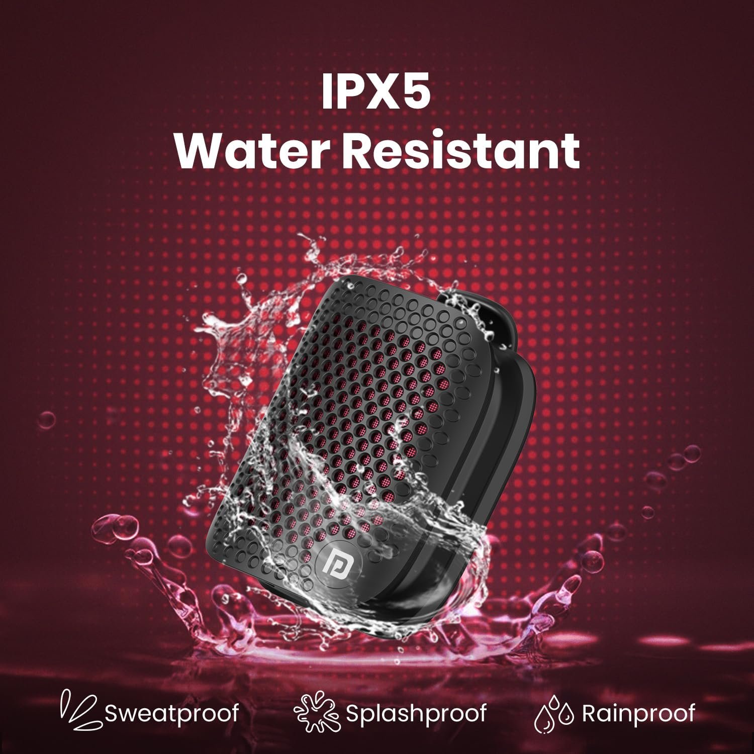 Portronics Talk Five 3W Wearable Bluetooth Speaker with Mic, Spring Clip-On, Upto 10Hours Playtime, IPX5 Water/Dust Resistant, Bluetooth 5.3v, Big Buttons, Portable Speaker with Microphone (Black)
