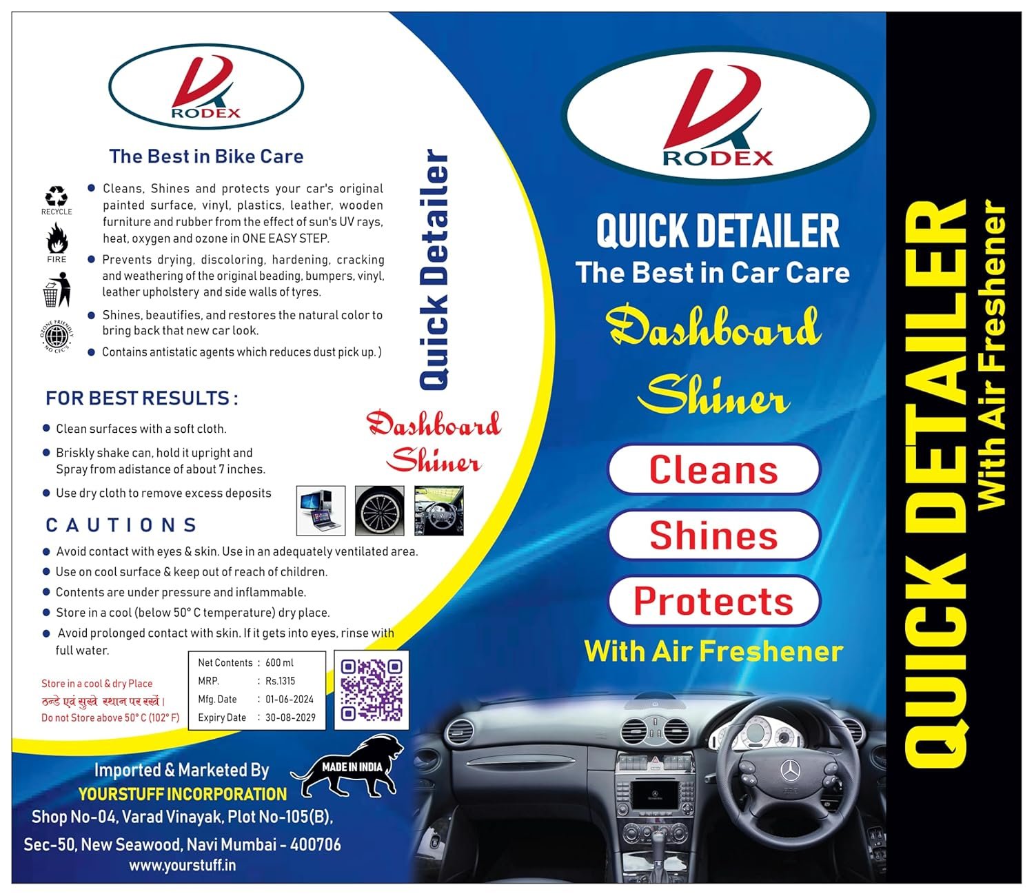 RODEX Shine Large Kit Complete Car Care Set - Dashboard Shiner, Waterless Car Cleaner & Polish, Stain Remover, and Sponge (1400ml) - 4 Essential Items for a Pristine Finish