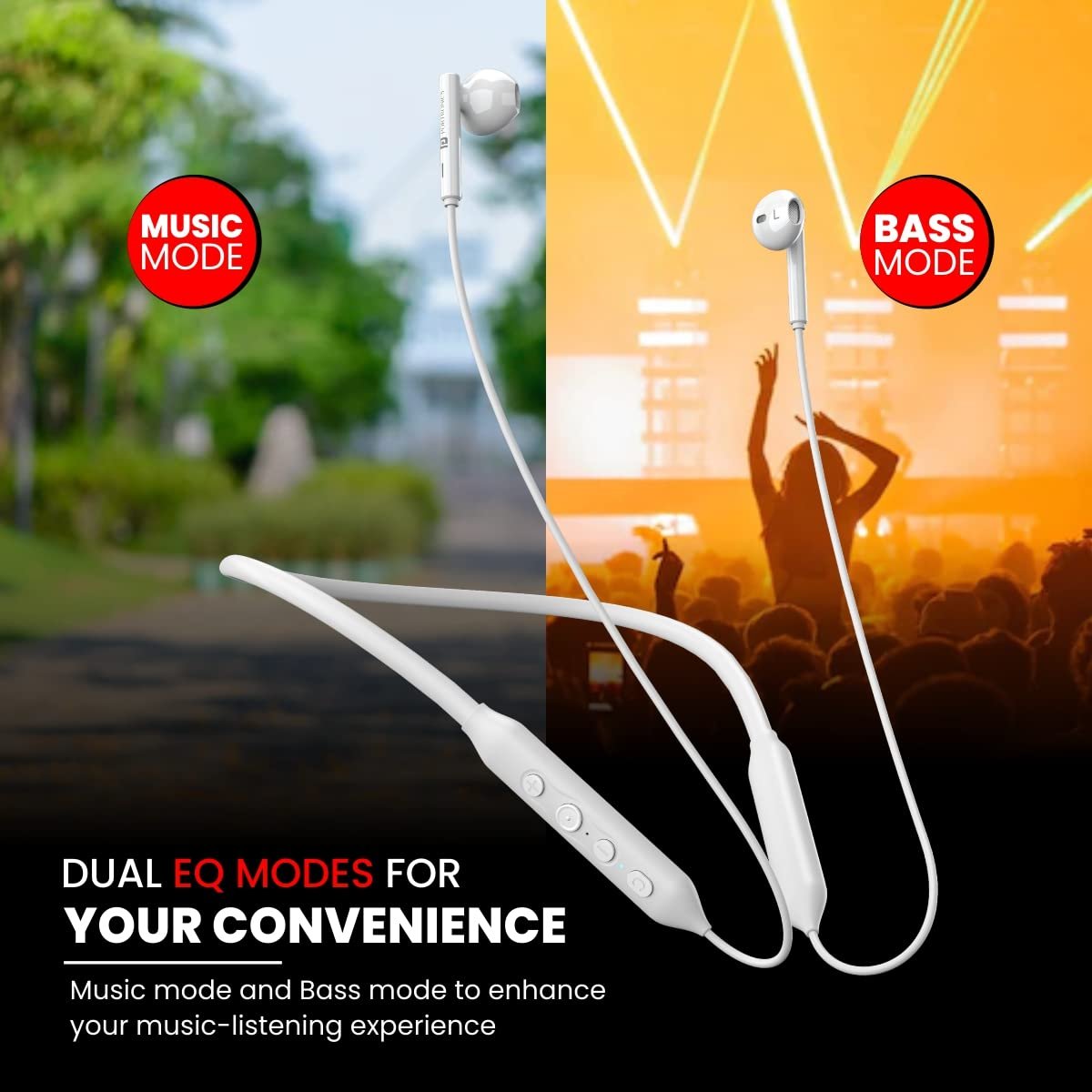 Portronics Harmonics Z5 Wireless Bluetooth Stereo Headset with 33Hrs Playtime, Double EQ Mode, 14.2 mm Dynamic Drivers, Click Action Buttons(White)