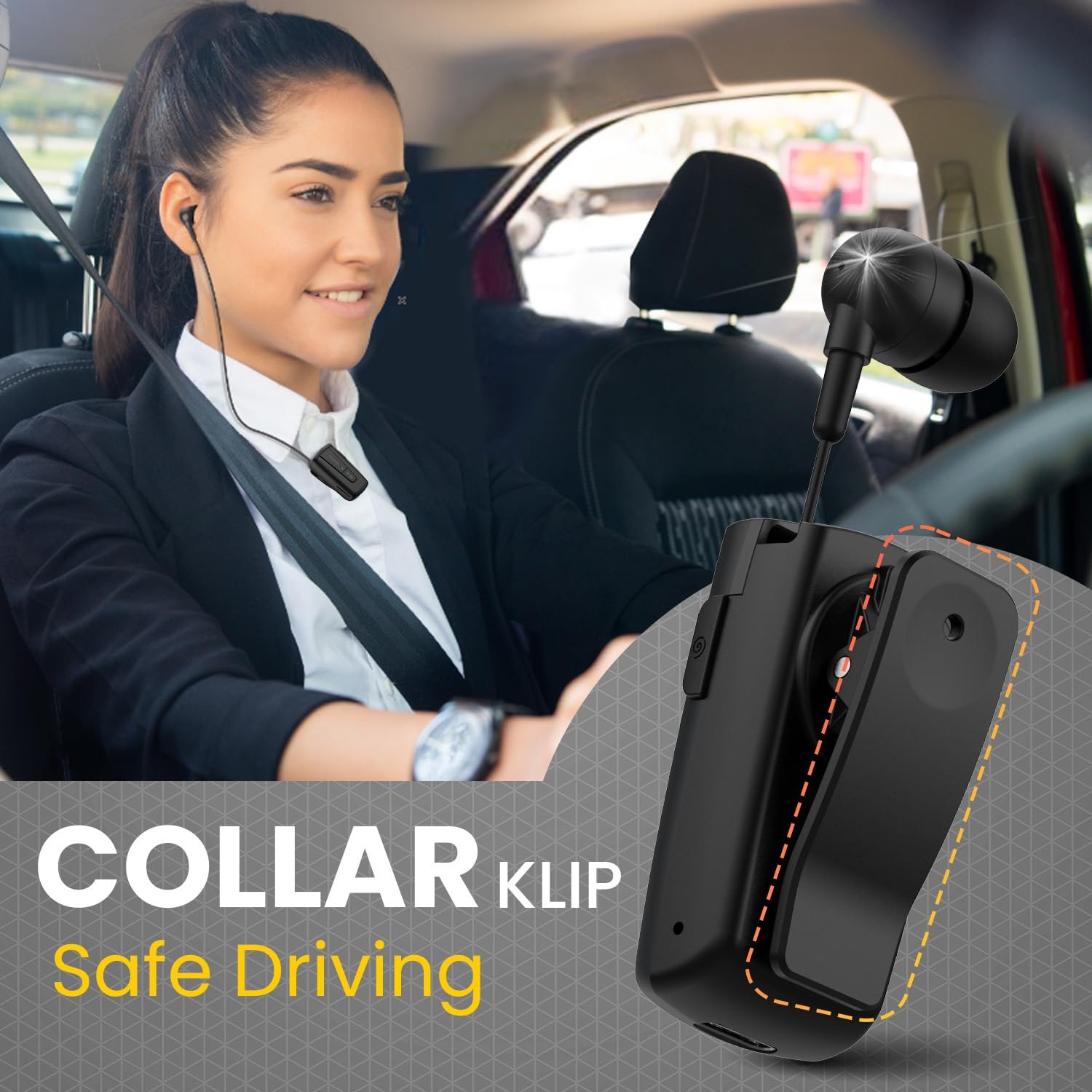 Portronics Harmonics Klip 4 Retractable Bluetooth Music & Calling Earphone with Long Playtime, Vibration Prompt (Black)