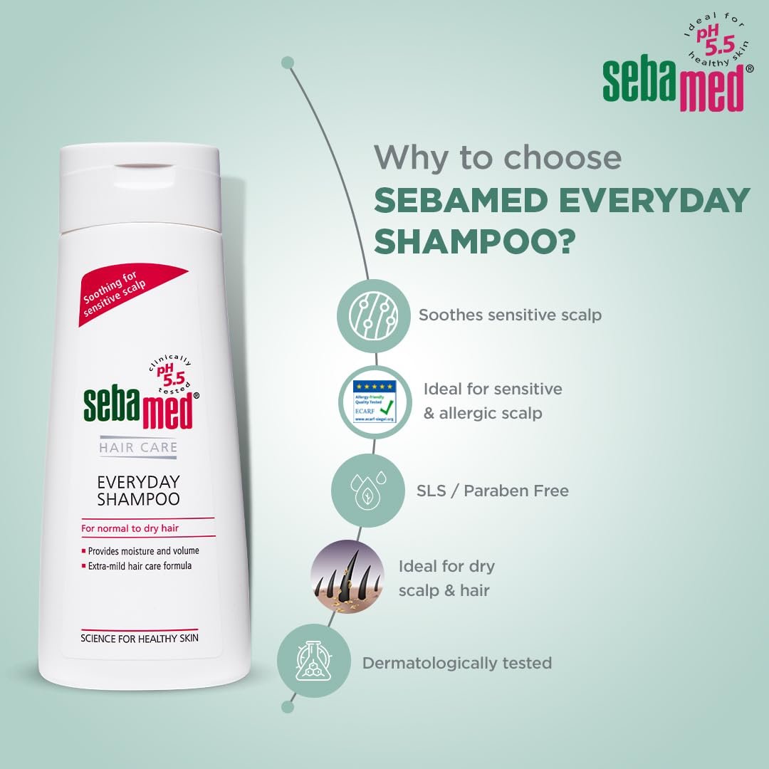 - Sebamed Shampoo is free from irritants like Parabens / Paraffin / Propylene Glycol/ Phthalates - hence is well tolerated by very sensitive scalp.