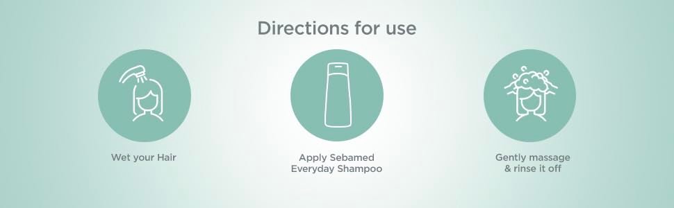 Directions: Wet your hair,work a small quantity os shampoo in to a lather in the palms of your hands.Wash the hair massaging the scalp gently.Rinse thoroughly.Repeat application if necessary.