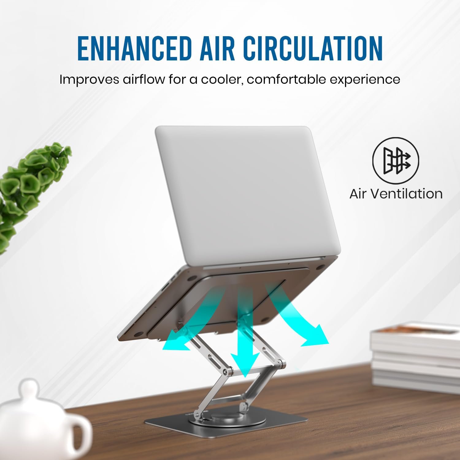 Portronics My Buddy K11 Pro Metal Laptop Stand with 360° Rotation, Adjustable Height & Angle, Improves Air Ventilation, 10 Kgs Max Weight for Laptops & MacBook(Silver)