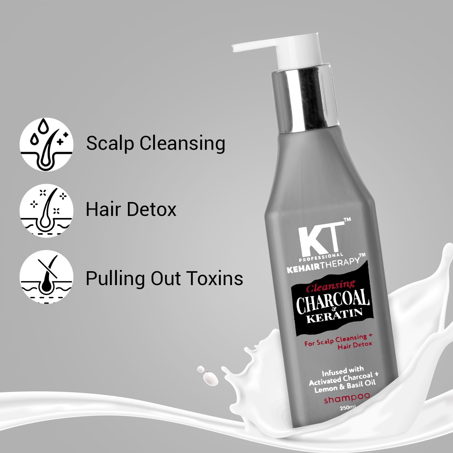 KEHAIRTHERAPY KT Professional Charcoal Keratin Protein Shampoo For Scalp Cleansing, Dandruff Control & Hair Detox 250ml- sulfate free, paraben free, silicone free